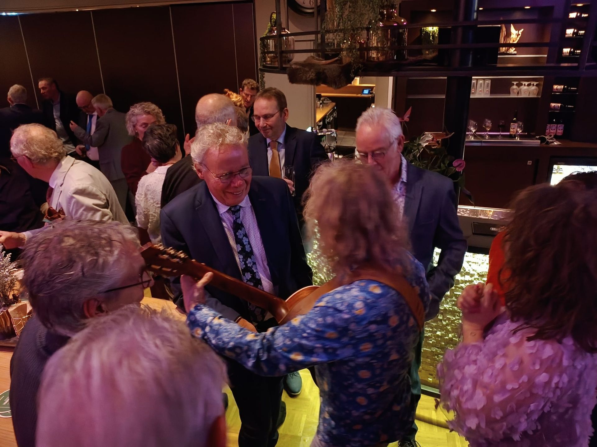 Na deze bijzondere onderbreking hervatte Loek zijn sociaal betrokken toespraak. Vervolgens werd het glas geheven om te proosten op het naderende jubileum en het welzijn van ons allen.