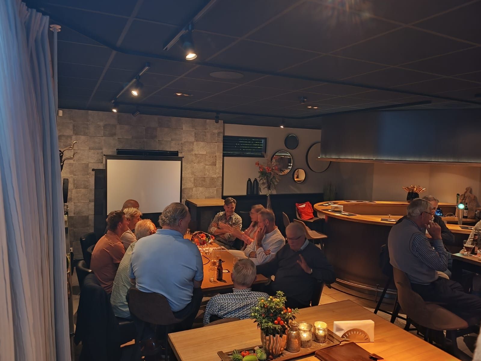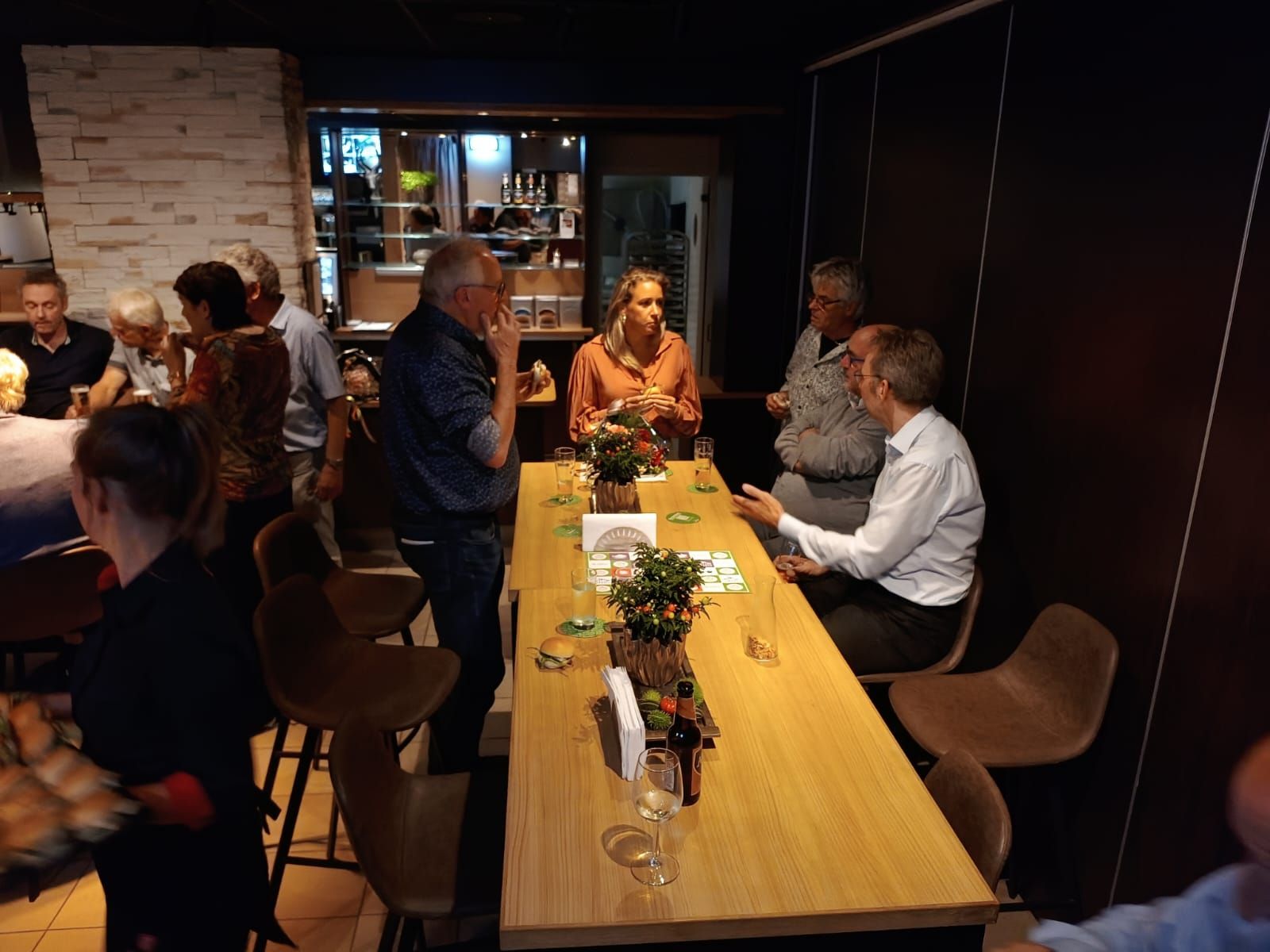 Vervolgens hadden we de gelegenheid om aan diverse tafels te praten over de zaken van de dag, onder het genot van heerlijke hapjes en drankjes. De sfeer was warm en uitnodigend, waardoor iedereen zich al snel op zijn gemak voelde.