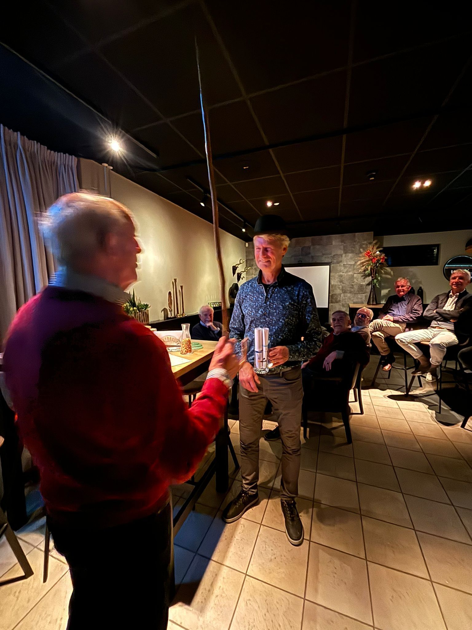 Cees is een bijzondere man met een interessant leven. Hij heeft altijd een glimlach op zijn gezicht en weet iedereen te vermaken met zijn humor en charisma. Tijdens de avond kregen we een inkijkje in zijn leven, ondersteund met grappige anekdotes en verhalen. Het was echt een feest om naar te luisteren!