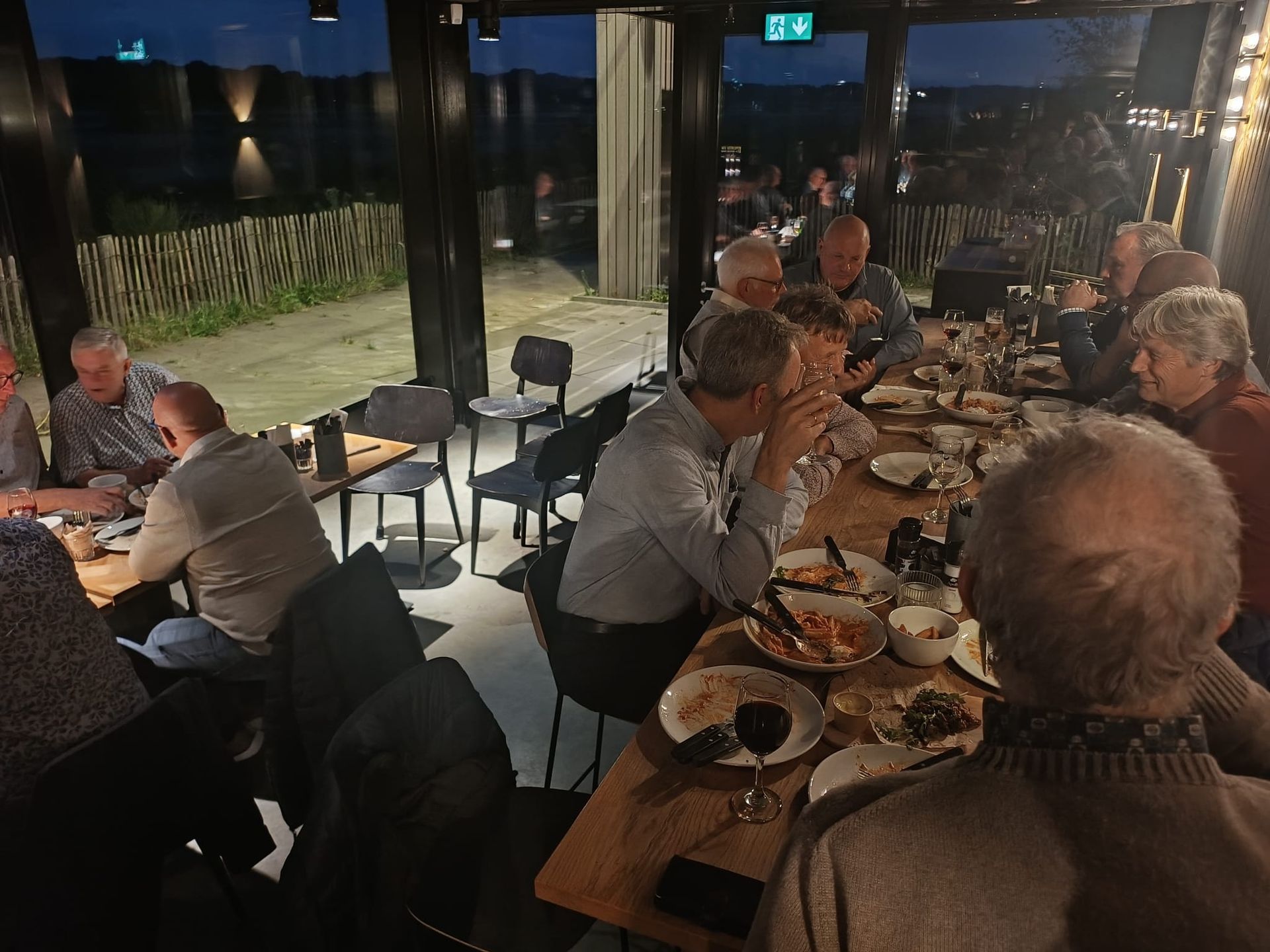 Na afloop keerden we terug naar het restaurant voor een gezellige borrel en een smakelijk diner. De terugrit naar het Westland stond in het teken van een hilarische muziekbingo, vakkundig geleid door Johan — een perfecte afsluiting van een geslaagde dag!
