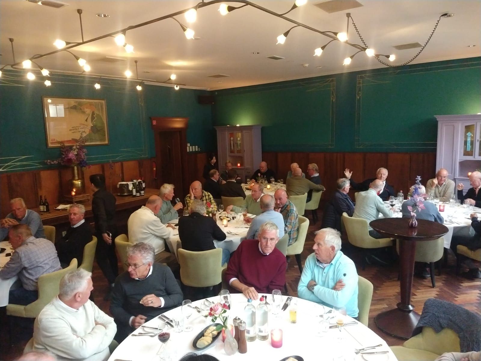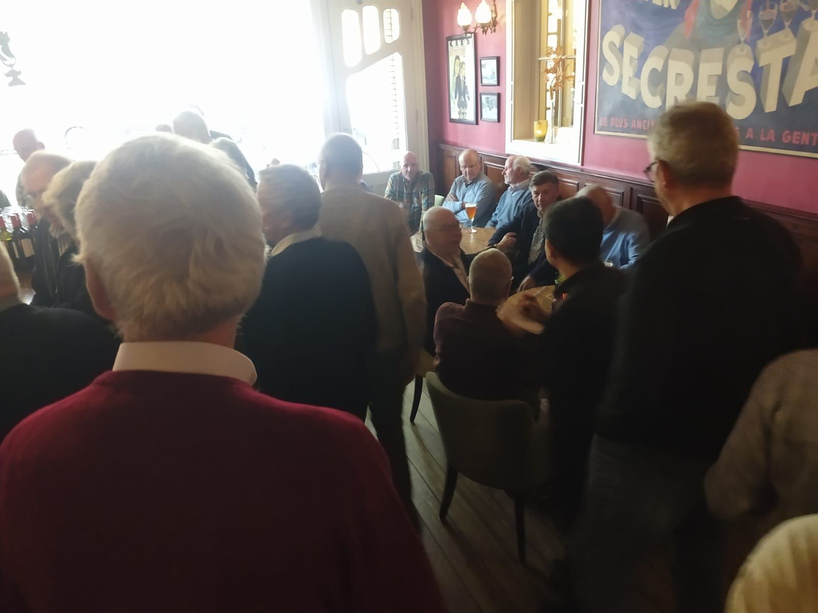 De eerste stop was in een gezellig restaurant waar ons een heerlijke lunch werd voorgeschoteld. Verdeeld over een 10 tal tafels vond een natuurlijke mengeling plaats van beide sociëteiten en werden de banden verder aangetrokken, kortom de sfeer was uitstekend.