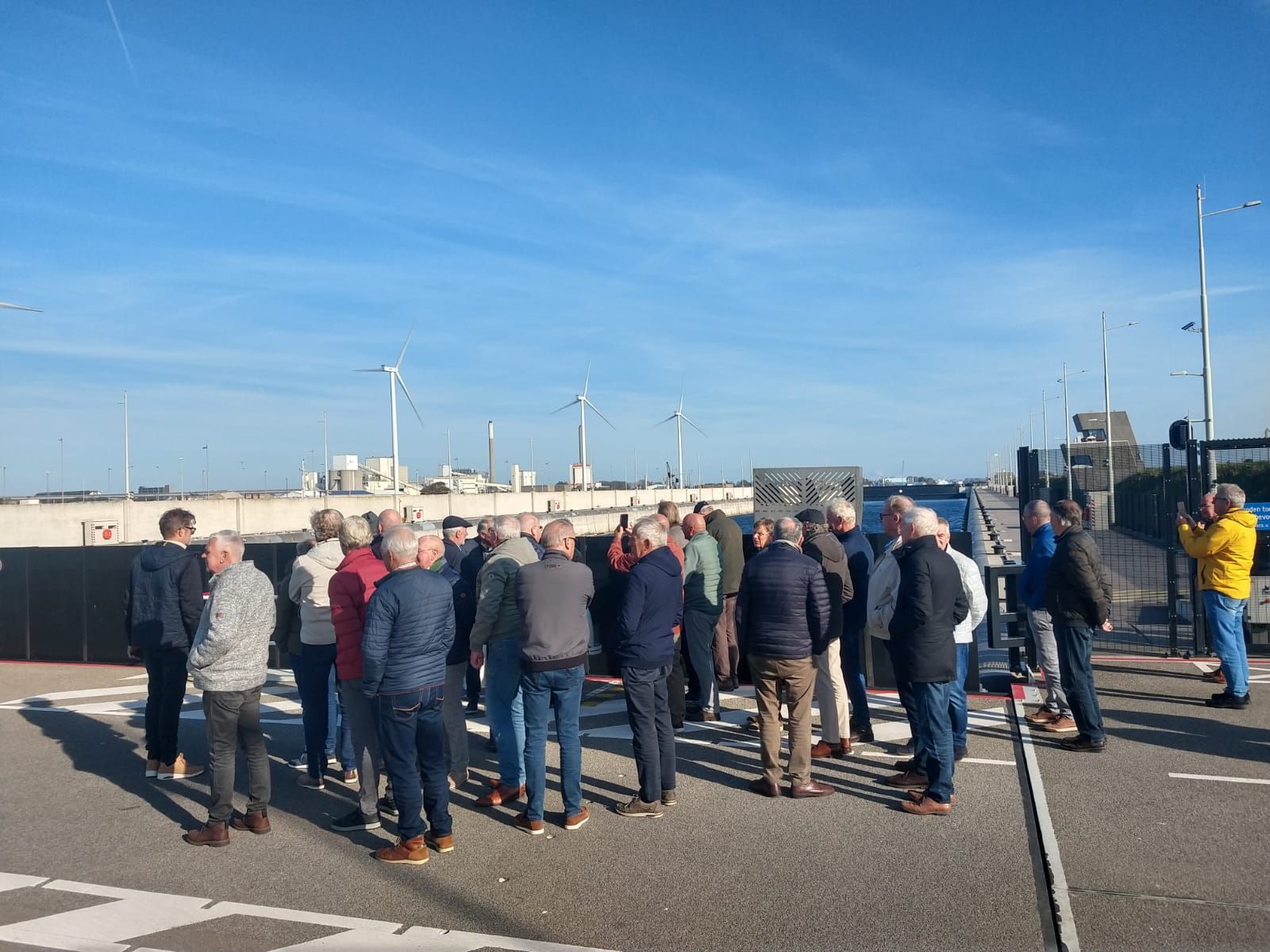 Na deze theoretische informatie was het tijd om de sluis in levende lijve te gaan bekijken en werden we door chauffeur Piet weer keurig bij de sluis afgezet. Deze rondleiding liet ons de volle grootte van de sluis tot ons doordringen en ontzag voor de bouwers én het technische vernuft van de ingenieurs was dan ook geheel terecht.