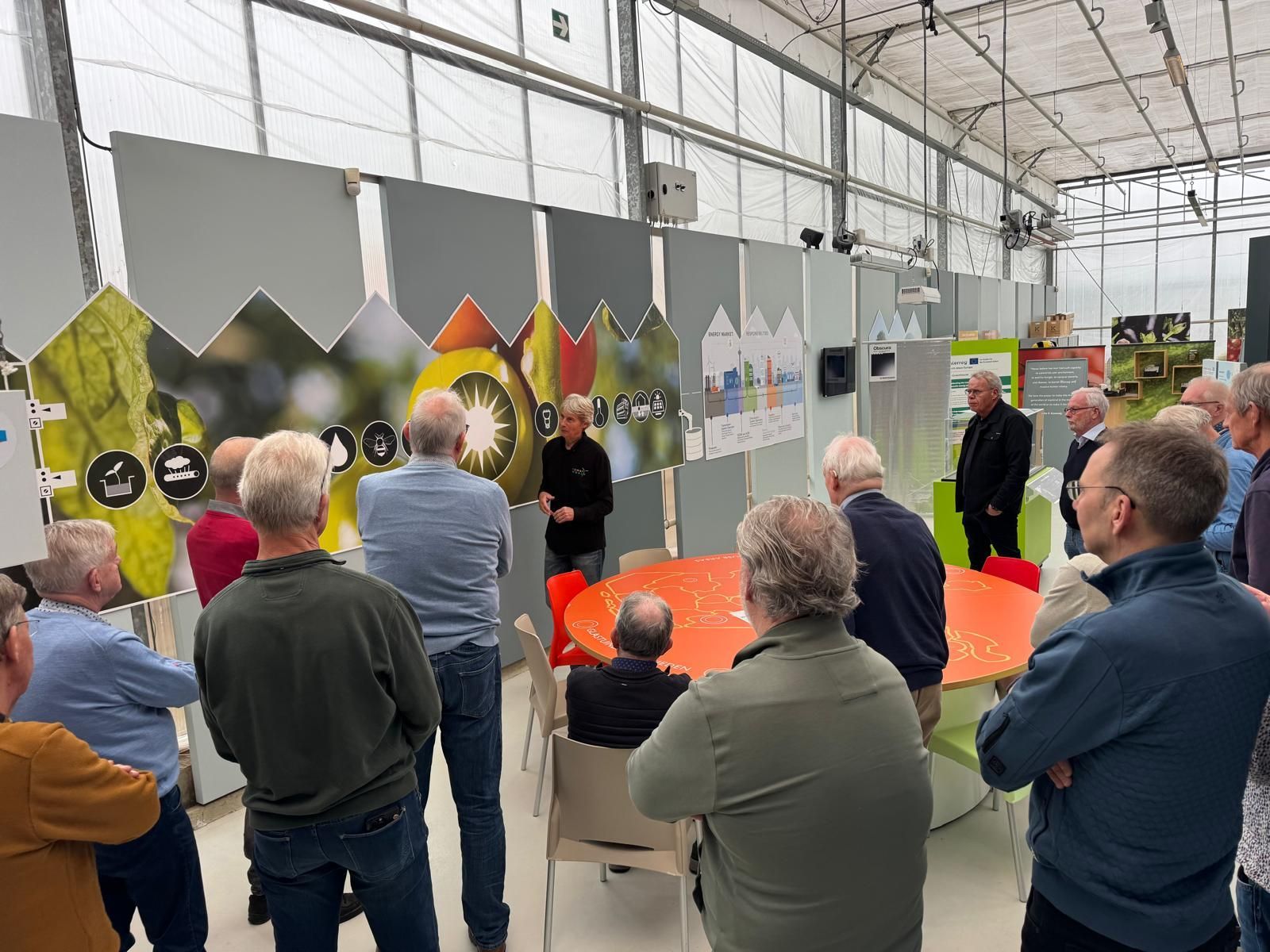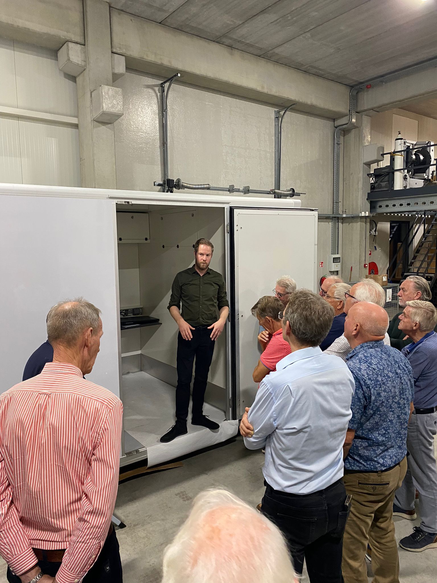 Bij aankomst werden we hartelijk ontvangen met koffie en een feestelijk taartje, waarna de eigenaar/directeur Hein ons meenam in een boeiende presentatie.