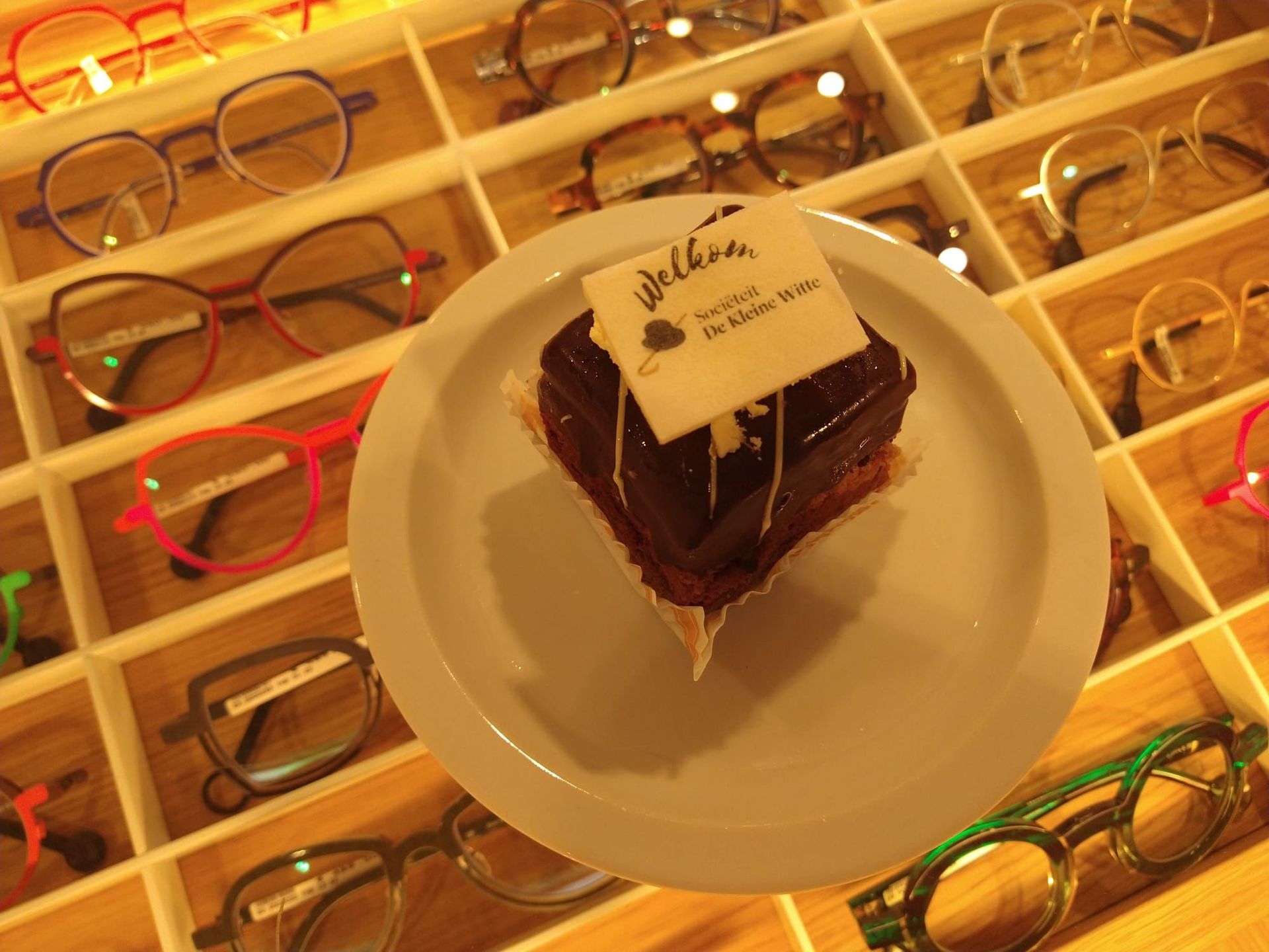 Tijdens ons bezoek werden we getrakteerd op gebak, met als persoonlijk tintje het logo van de sociëteit. Deze kleine attentie gaf aan dat de opticien oog heeft voor detail en klanttevredenheid hoog in het vaandel heeft staan. Het gebaar werd zeer gewaardeerd en droeg bij aan de positieve ervaring van ons bezoek.